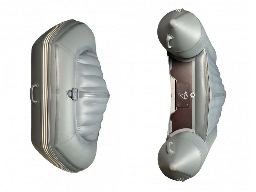 - четырьмя надувными отсеками и отдельно накачиваемым дном;