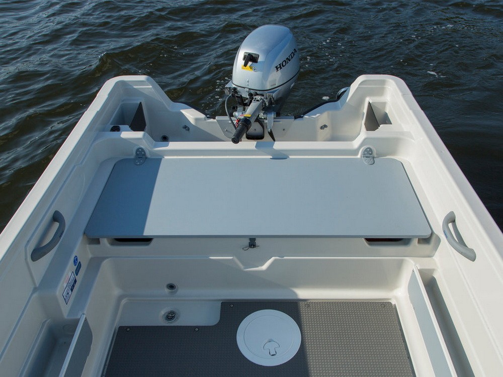Под подвесной лодочный мотор 15-40 л.с. Кормовой транец усилен алюминиевой пластиной, что позволяет установить на транце лодочный мотор мощностью до 40 л.с. Мощность двигателя чрезвычайно полезна, особенно когда в лодке обычно путешествуют 4-5 человек с грузом.